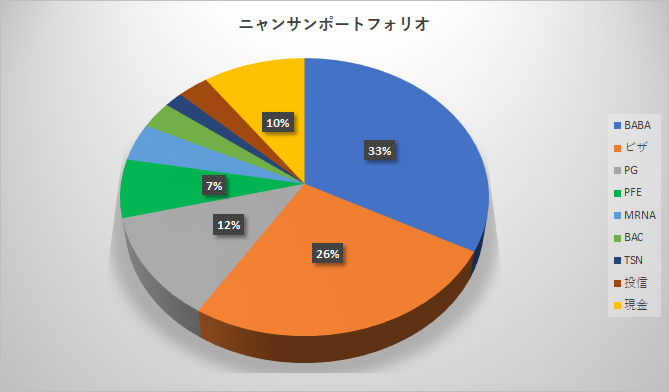 BABA(中国株)を中心とした銘柄を少数に絞っていく投資スタイルです。